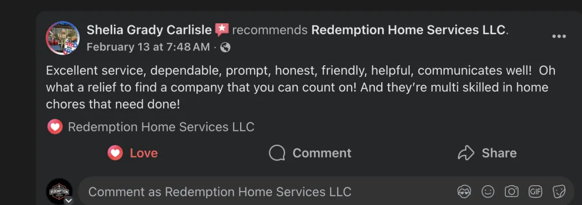 "Would recommend this young man to anyone!!!his price is very reasonable & he works very hard to make sure you're satisfied with his work...I am very pleased with his work.he sure takes a lot of pride in what he does."